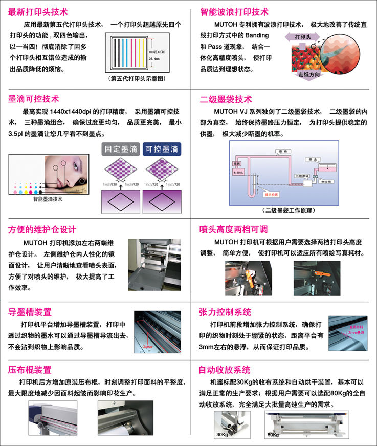 ? 最大打印幅寬1,615mm,生產速度18平米/小時;
