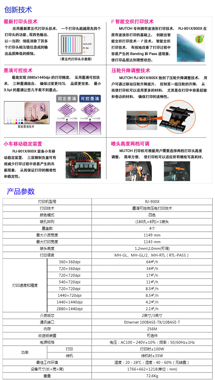 ? RJ-900X最大介質(zhì)幅寬1,149mm,最大打印幅寬1,143mm;
